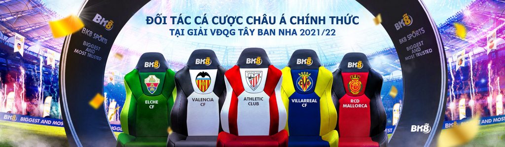 Từng bước khẳng định giá trị và sức ảnh hưởng của mình lên đến ngành công nghiệp cá cược thể thao, BK8 hiện tại tự hào trở thành nhà tài trợ chính thức cho 5 câu lạc bộ bóng đá thuộc khuôn khổ giải VĐQG Tây Ban Nha trong mùa giải 2021 – 2022.